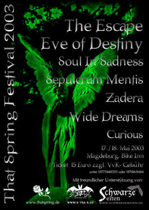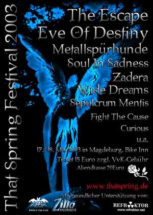 LineUp 2003: Eve Of Destiny, Zadera, Wide Dreams, S.I.S., Curious, Metallspürhunde, The Escape, Sepulcrum Mentis....